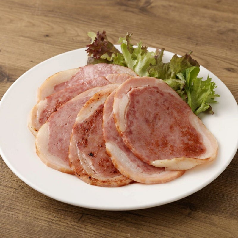 厳選した豚肉と自社グループ牛肉を使用したあらびき肉を、増量材や8大アレルギー物質を一切使用せず、自然熟成法により漬込んだ豚バラ肉で丁寧に包み込み、じっくりと燻煙した、ソフトな食感で贅沢なステーキ風のハムです。