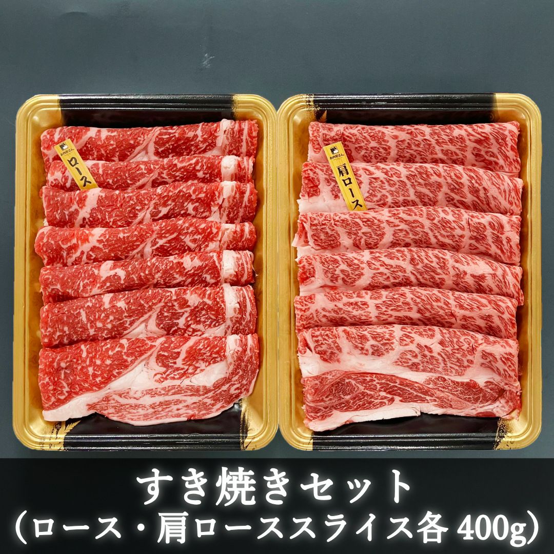 赤身が美味しい宮崎県産黒牛のロースと肩ロースを400gずつ化粧箱に詰め合わせてお届けする800gの贅沢なすき焼きセットです。ギフトやお歳暮、ご家庭用にも贈答用にも喜ばれる逸品です。大切な方へのお祝い、内祝いをお探しの方におすすめです。